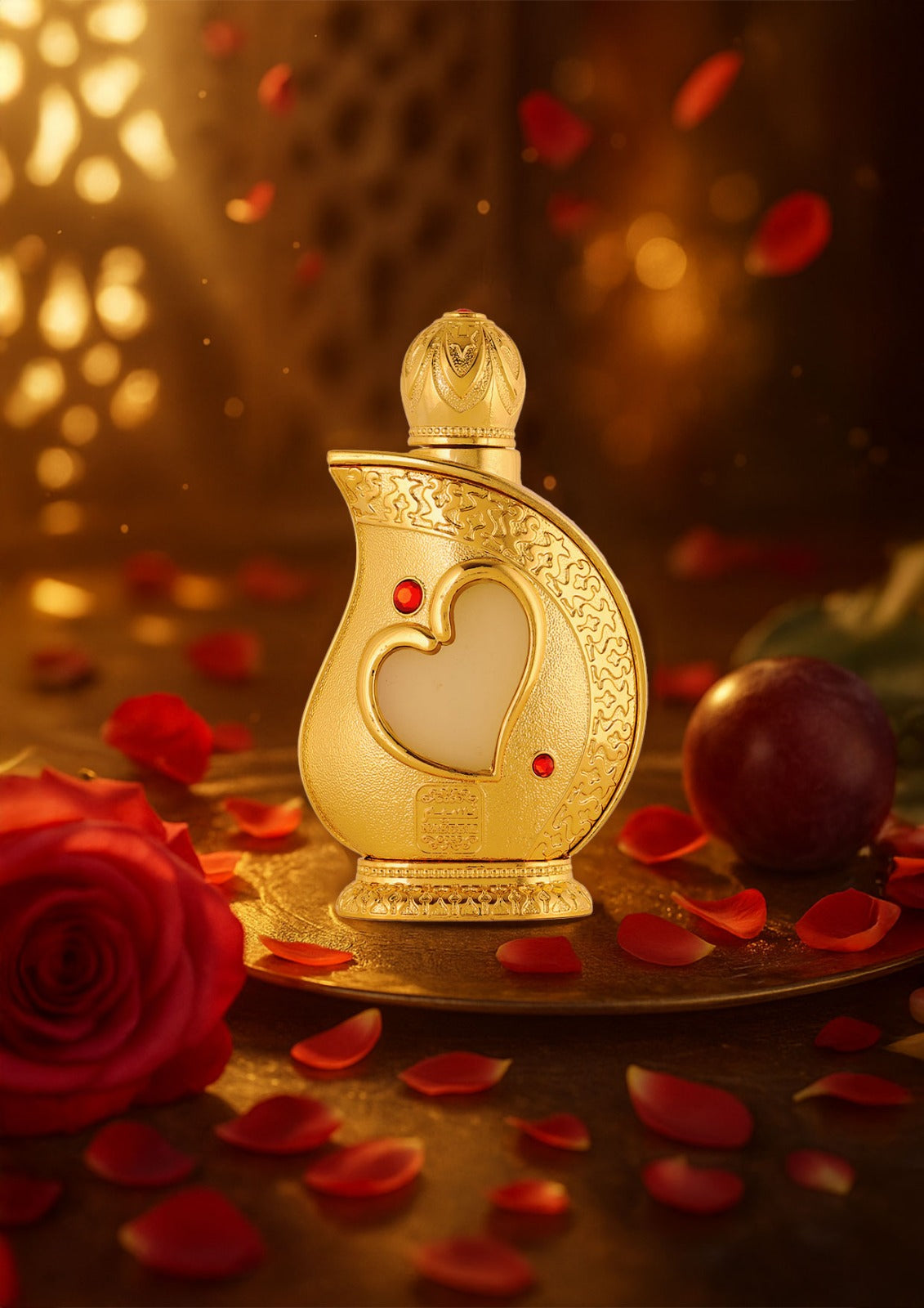 A rich and inviting fragrance that begins with the juicy sweetness of plum and crisp apple. The heart reveals a soft floral blend of jasmine and violet, wrapped in creamy sandalwood. Deep base notes of warm vanilla, earthy patchouli, and golden amber create a lingering trail of elegance and depth.