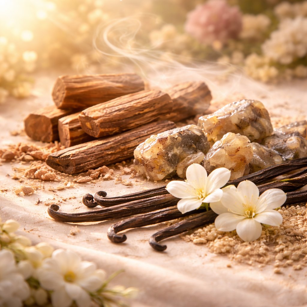 At its heart, the fragrance becomes deeply floral and elegant. Heliotrope and orris lend a powdery softness, while gardenia, tuberose, and jasmine bloom in full, white-floral splendor. This middle chapter feels rich and intoxicating, wrapping the senses in a sensual, almost velvety embrace.