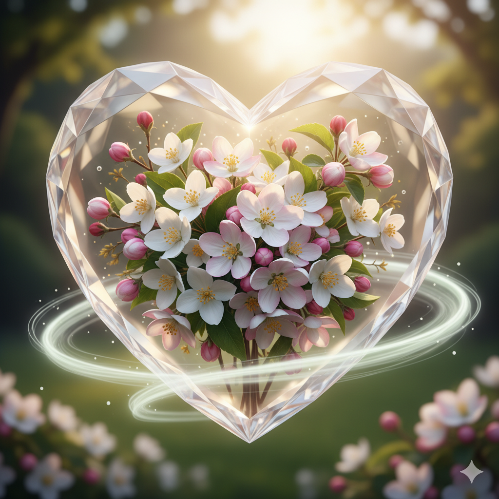 The heart reveals an elegant bouquet of jasmine and apple blossom, wrapping the senses in soft floral sweetness.