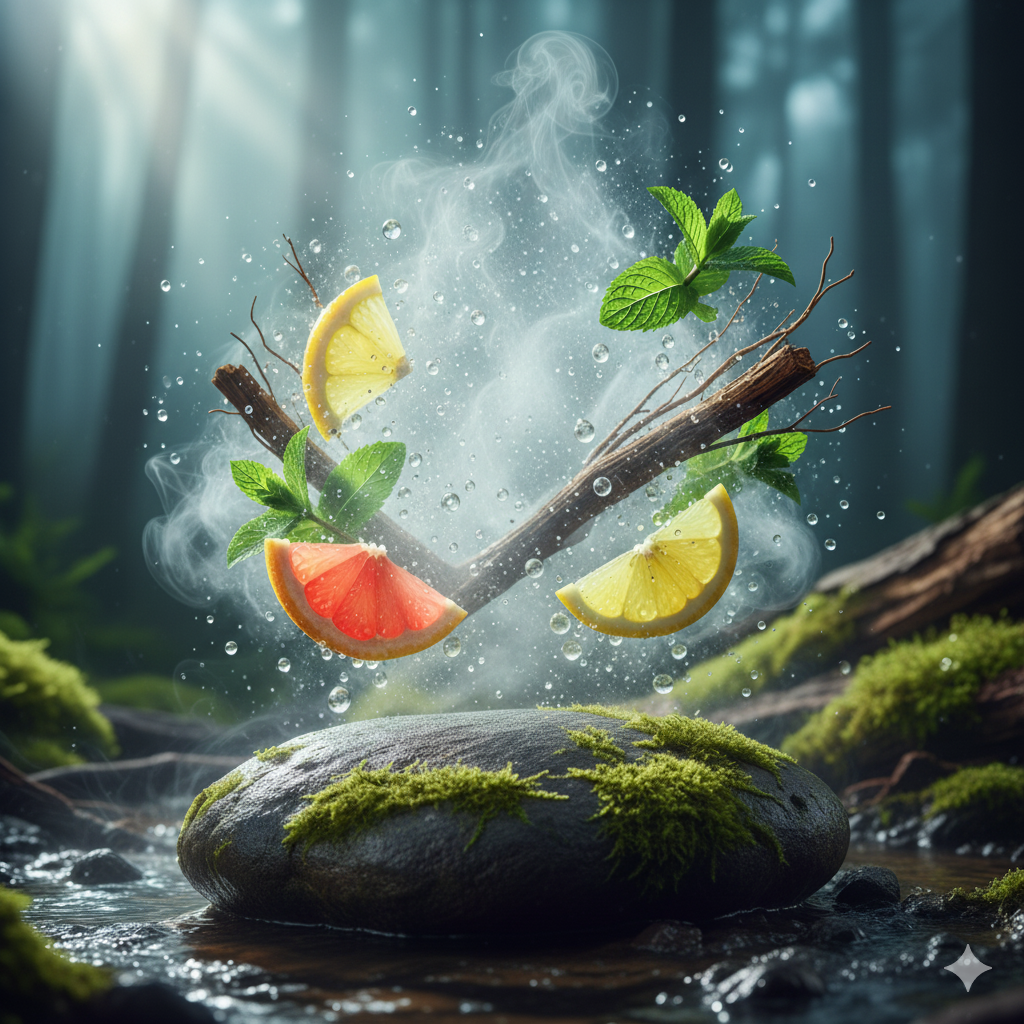 A burst of orange and grapefruit opens the scent with lively freshness. Mint and neroli add a cool breeze, while vetiver and cedarwood create a smooth, calming finish.