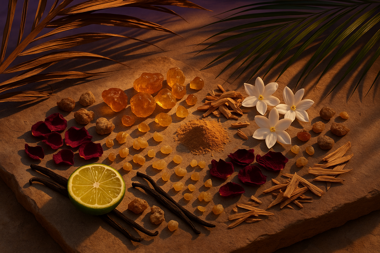 Safa Attar is a refreshing aromatic-floral-ambary fragrance that opens with the vibrant zest of lime and orange, offering an invigorating start.