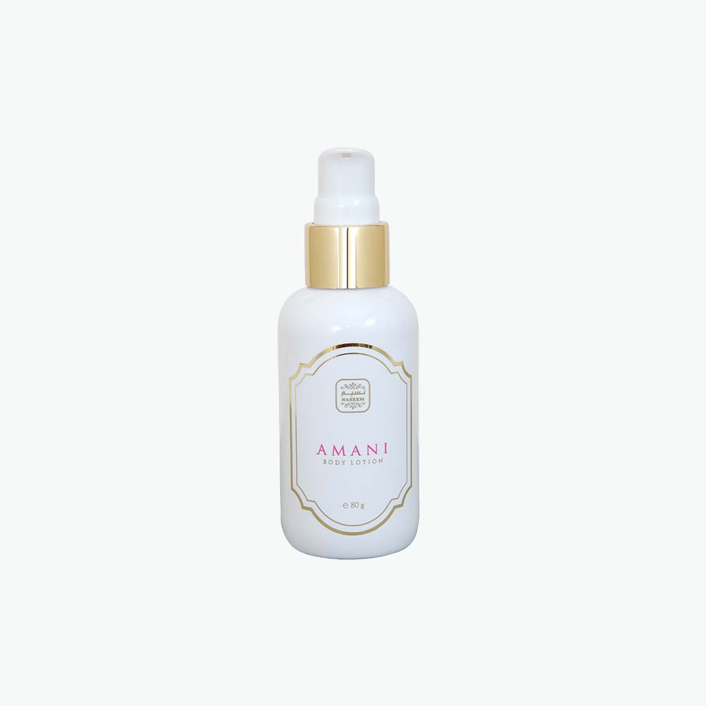 AMANI 80GM Body Lotion is decadent blend of fruit, florals, and warm woods. This luxurious body care experience begins with the juicy allure of plum and crisp apple, unfolding into a heart of velvety jasmine, violet petals, and creamy sandalwood. As it settles, the skin is enveloped in a sensual base of vanilla, amber, and earthy patchouli; rich, warm, and unforgettable