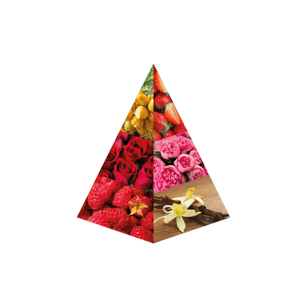 When the day fades, the perfume settles into an intimate embrace. The sensual glow of Musk mingles with the tender sweetness of Raspberry and Vanilla, leaving a lingering trail that feels both innocent and irresistible.