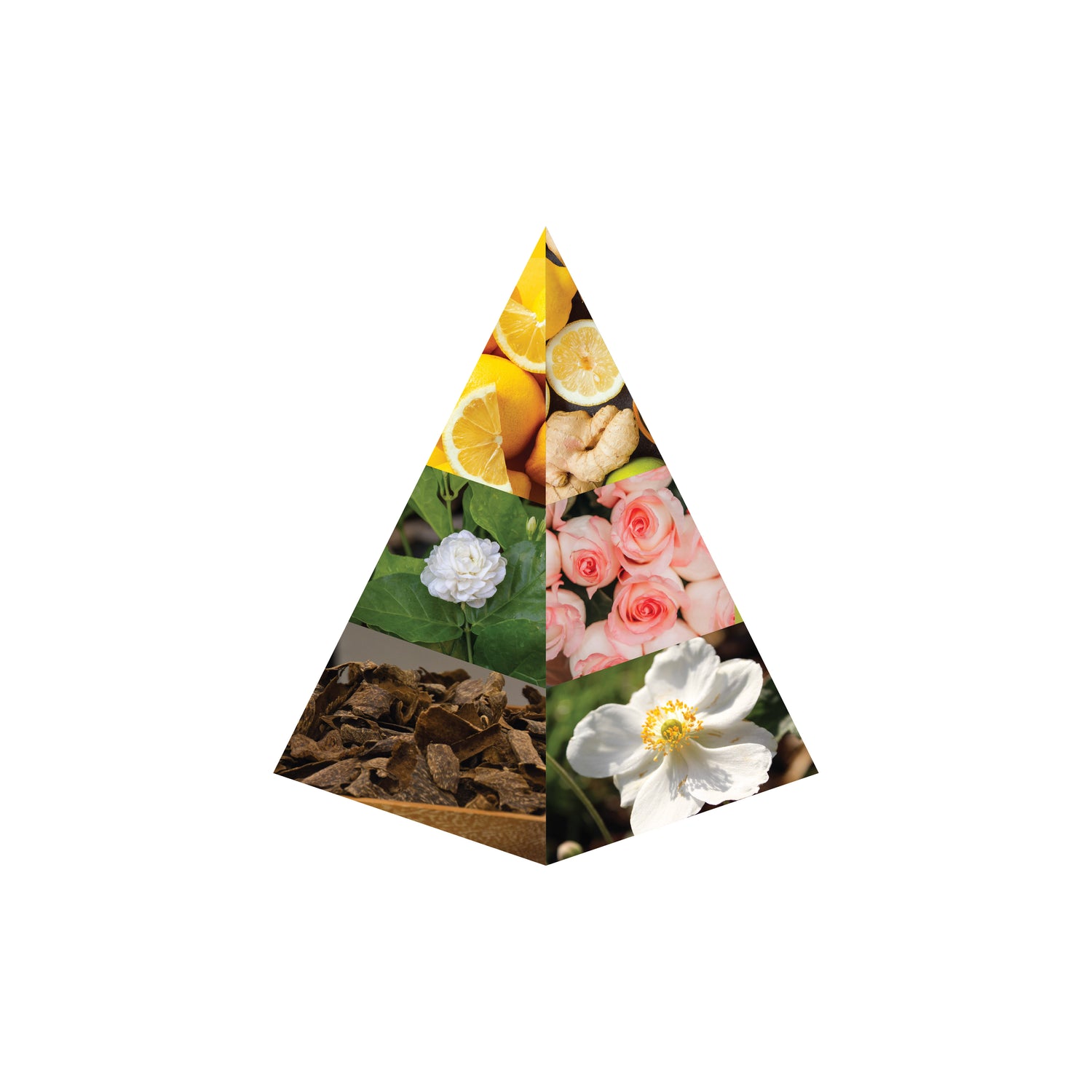 A fresh and energetic scent that opens with the crisp brightness of lemon, juicy apple, and a spicy touch of ginger. The heart reveals a soft floral bouquet, adding a graceful elegance. The fragrance settles into a smooth, sensual base of cedarwood and musk, leaving a clean and confident trail.