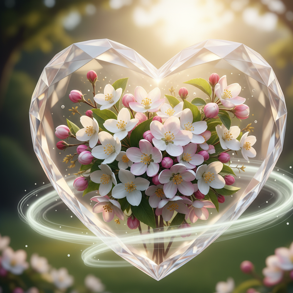 The heart reveals an elegant bouquet of jasmine and apple blossom, wrapping the senses in soft floral sweetness.